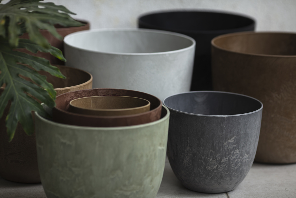Artstone Claire Marble features a rounded silhouette that tapers towards the base, offering a timeless design ideal for various plant types and decor styles. This bestseller range comes in a variety of shapes, sizes and colours.