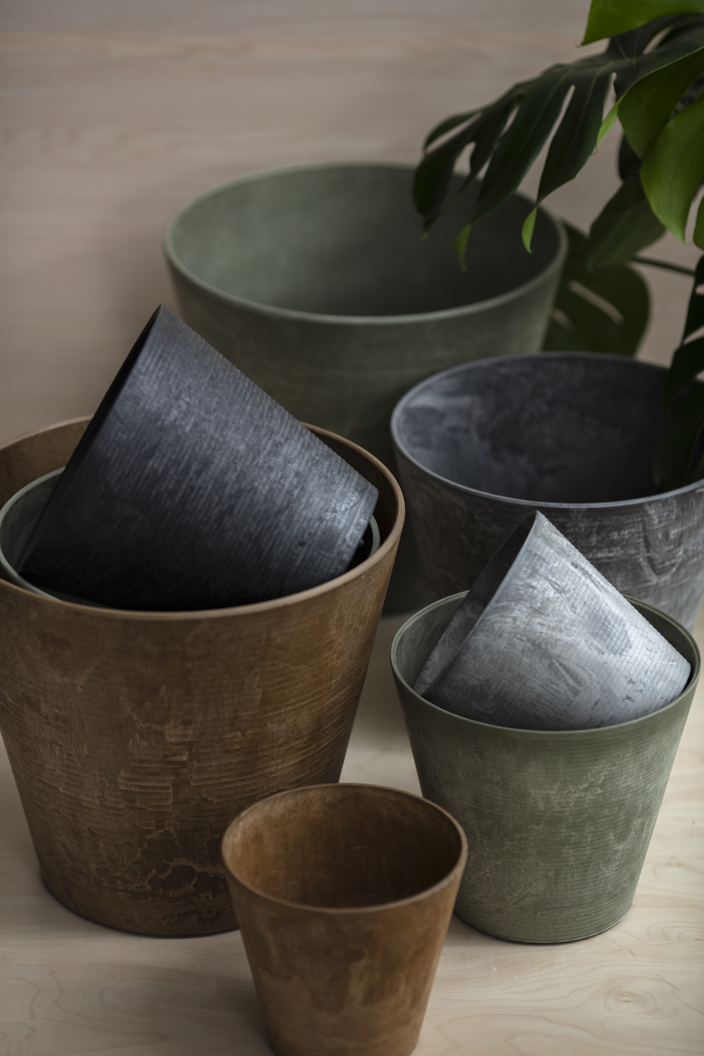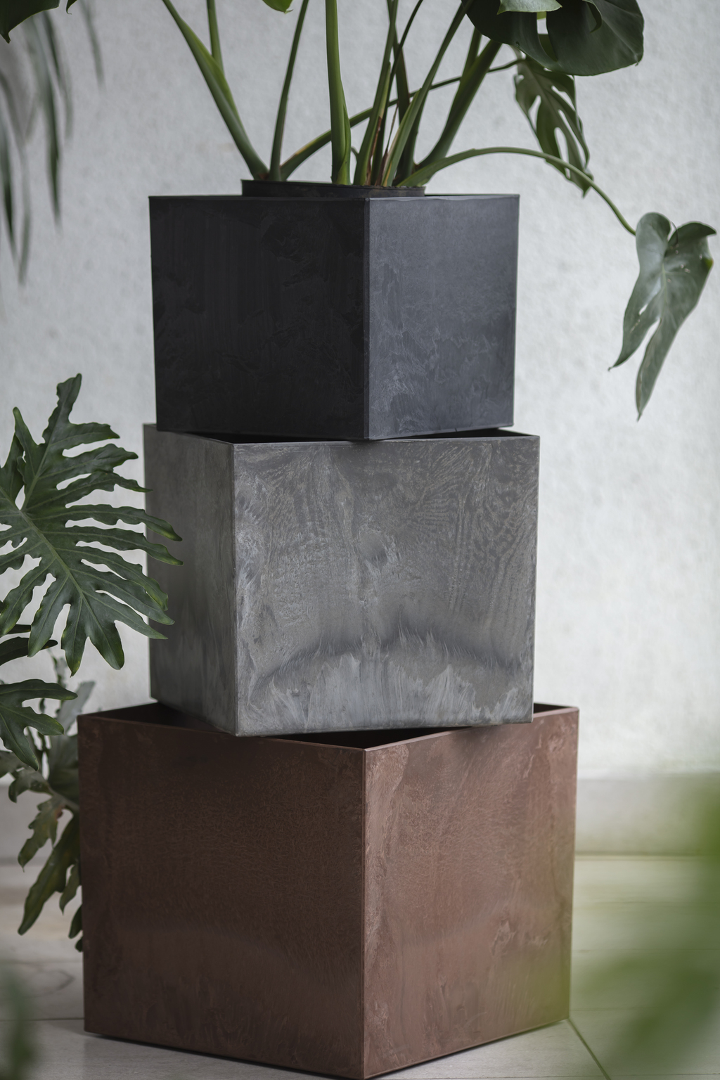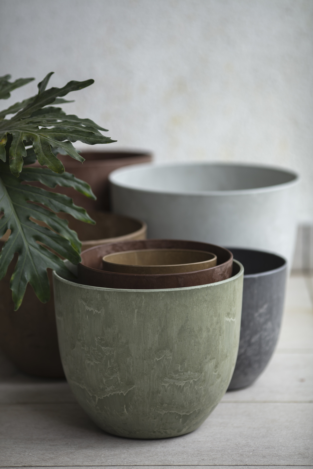With a brush matte finish, the Sanded Series shares the same material base as the Marble Series, including the self-watering feature and dual indoor-outdoor usability.