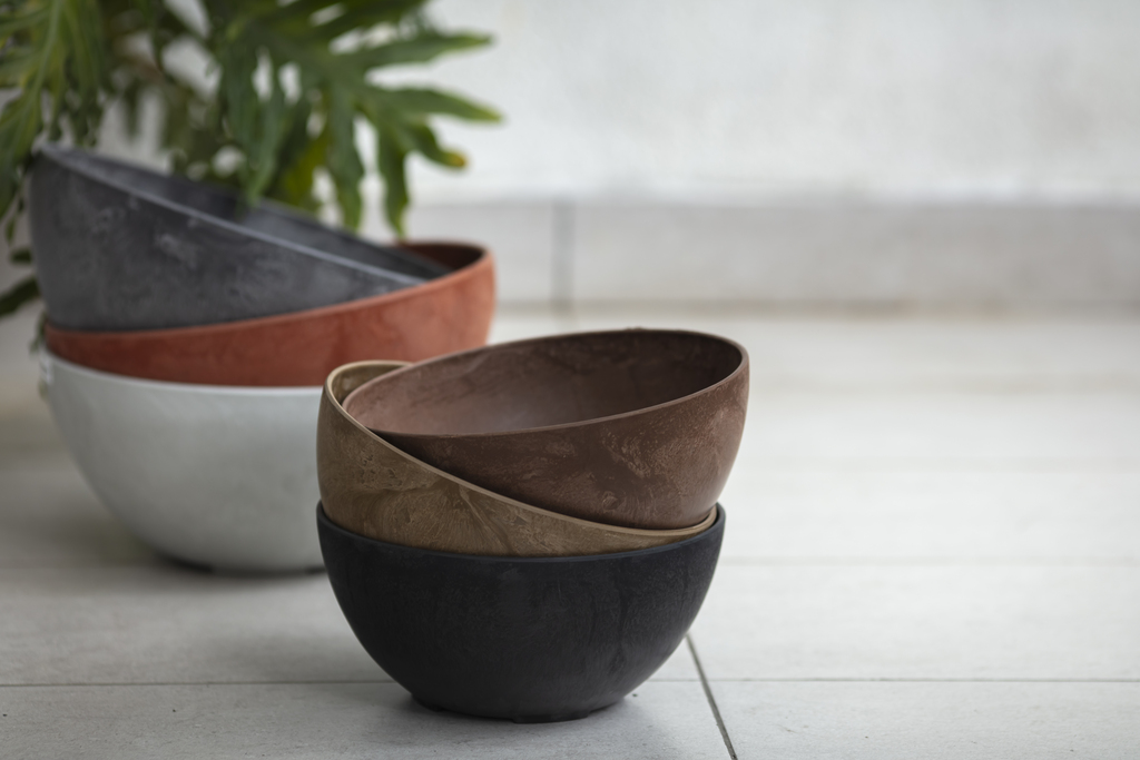 Artstone Marble Fiona resembles a bowl and come in standing or hanging versions, making it ideal for trailing plants and creative display